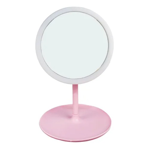ESPEJO CON LUZ USB REDONDO ROSA